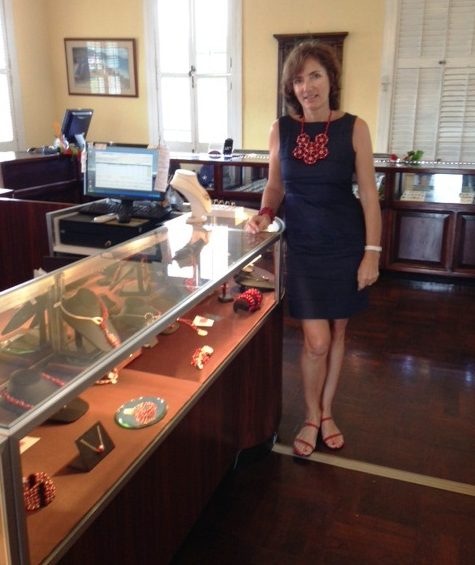 Within four months of hard work, she was able to bring EBD to over twelve galleries and boutiques in the U.S. Virgin Islands. As someone with a strong committment to our jewelry line, Clara has organized jewelry trunk shows in partnership with different galleries. After delivering our jewelry collection to different retailers, she took the time to revisit and take photos of how our jewelry is looking on display.